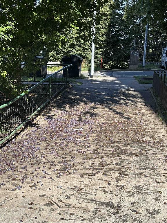 Po chodníku už nelze chodit, je třeba odstranit spadané ovoce