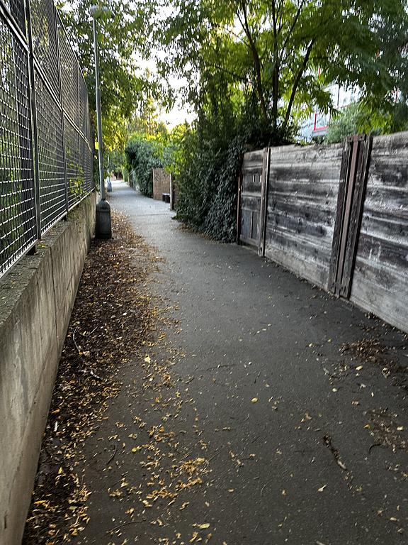 Již několik týdnů neuklizený chodník mezi domy a hřištěm.