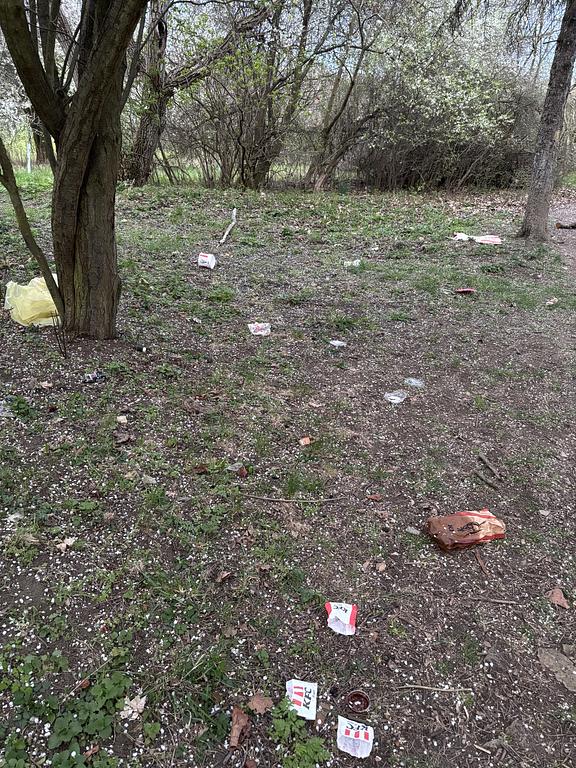 Odpadky v okolí ohniště, kousek od galerie butovice