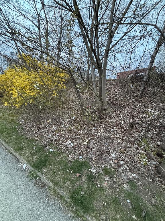 Odpadky v ulici Armády za zastávkou BUS Kovářova – KD Mlejn ve směru Luka