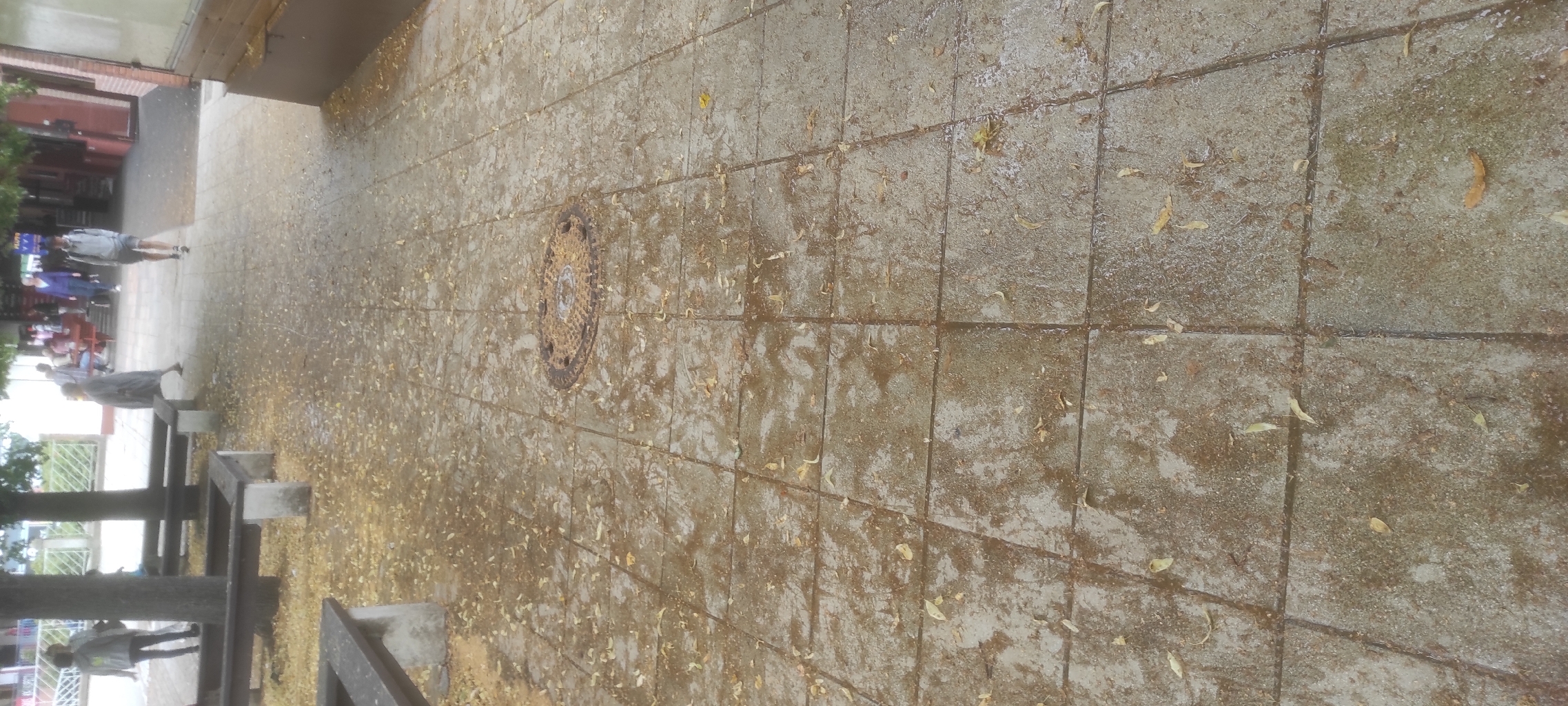 Velmi znečištěné chodníky před kebab na Luka, nepořádek ze stromů