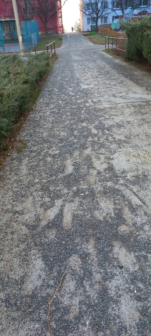 u Jezera ještě po sněhu zůstal inertní posyp, dětem to klouže na odrážedlech a dospělím na bruslích, tak se chci zeptat, kdy bude odstraněn. jedná se o chodníky v pátku u jezer.