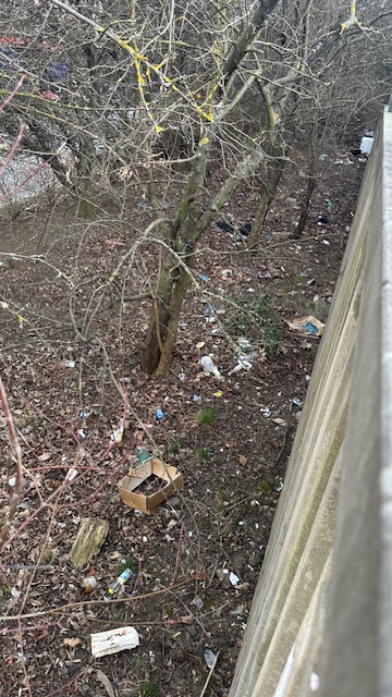 Dobrý den, úklid nepořádku + vysekání křoví a úprava zeleně. Ulice Píškova, u ZŠ Brdičkova – 50.042774, 14.332767, 50.042581, 14.332794.