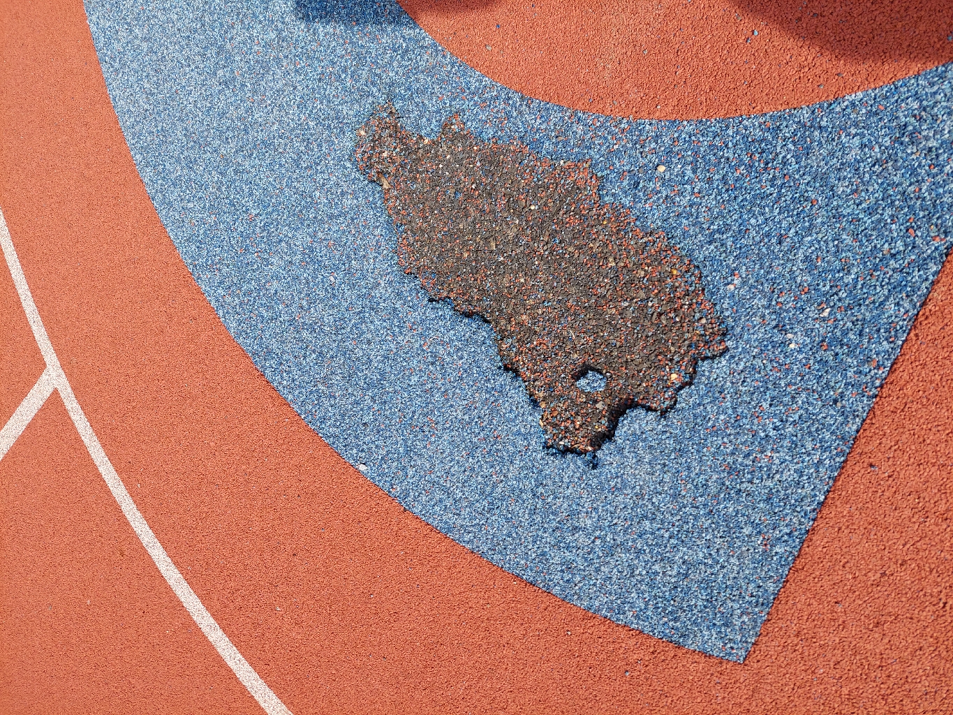 poniceny tartan na hristi nad skolkou ms sikulka,zbytky tartanu jsou po celem hristi,predem dekujeme za opravu