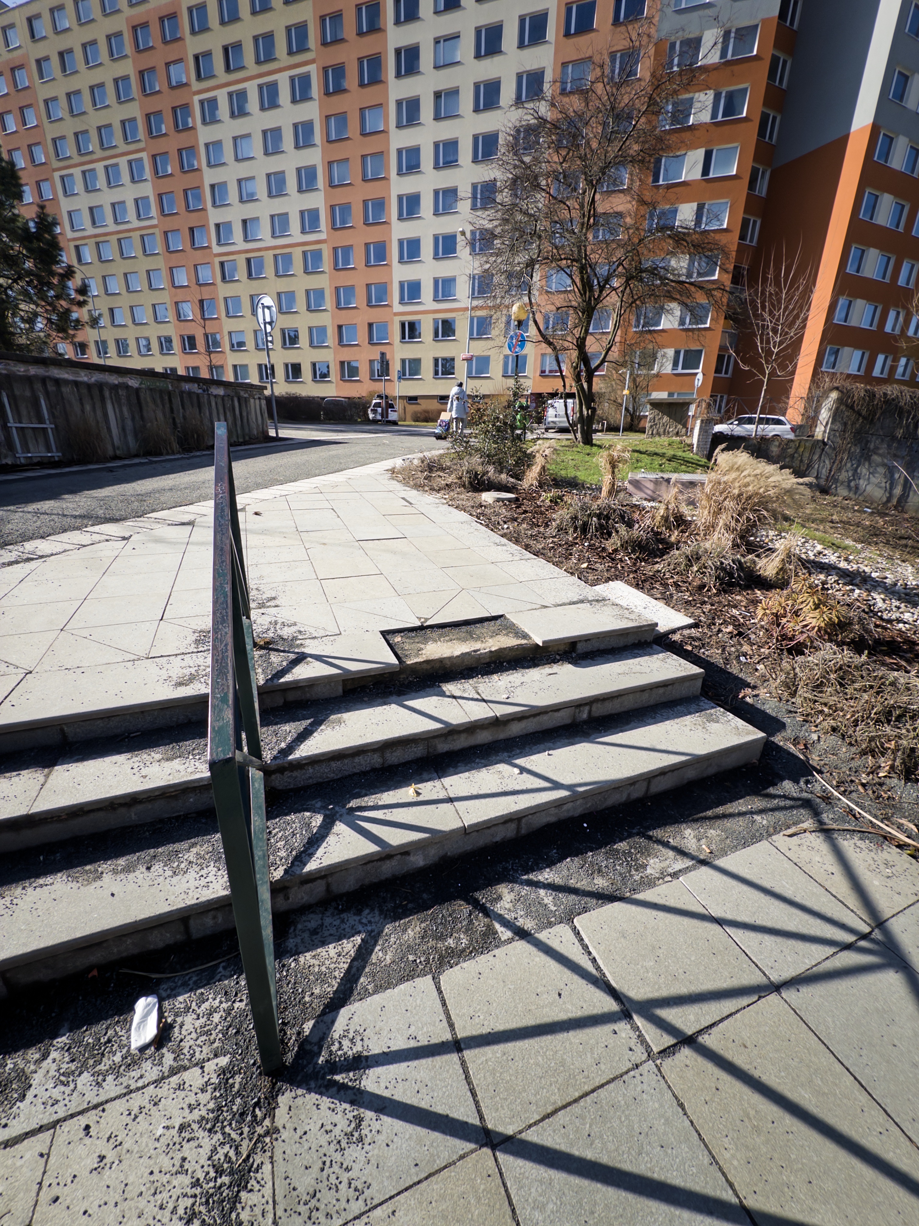 Znicena dlazdice schody za OC Luziny