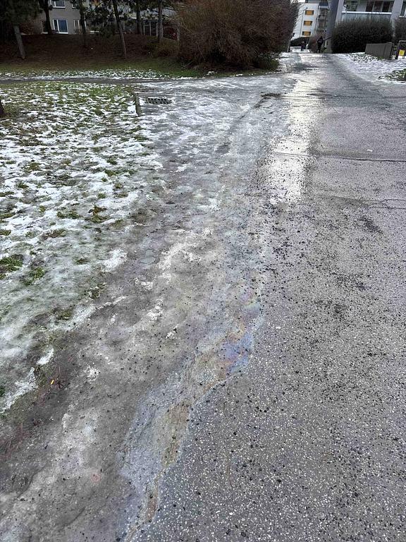Při úklidu sněhu o víkendu zase unikala nafta z multikáry. Zase jsou od nafty v podstatě všechny chodníky na VO. Už jsem na to pracovníky úklidu upozorňoval vloni, že jim z multikáry teče nafta, ale bylo jim to hedno. Letos se situace opakuje