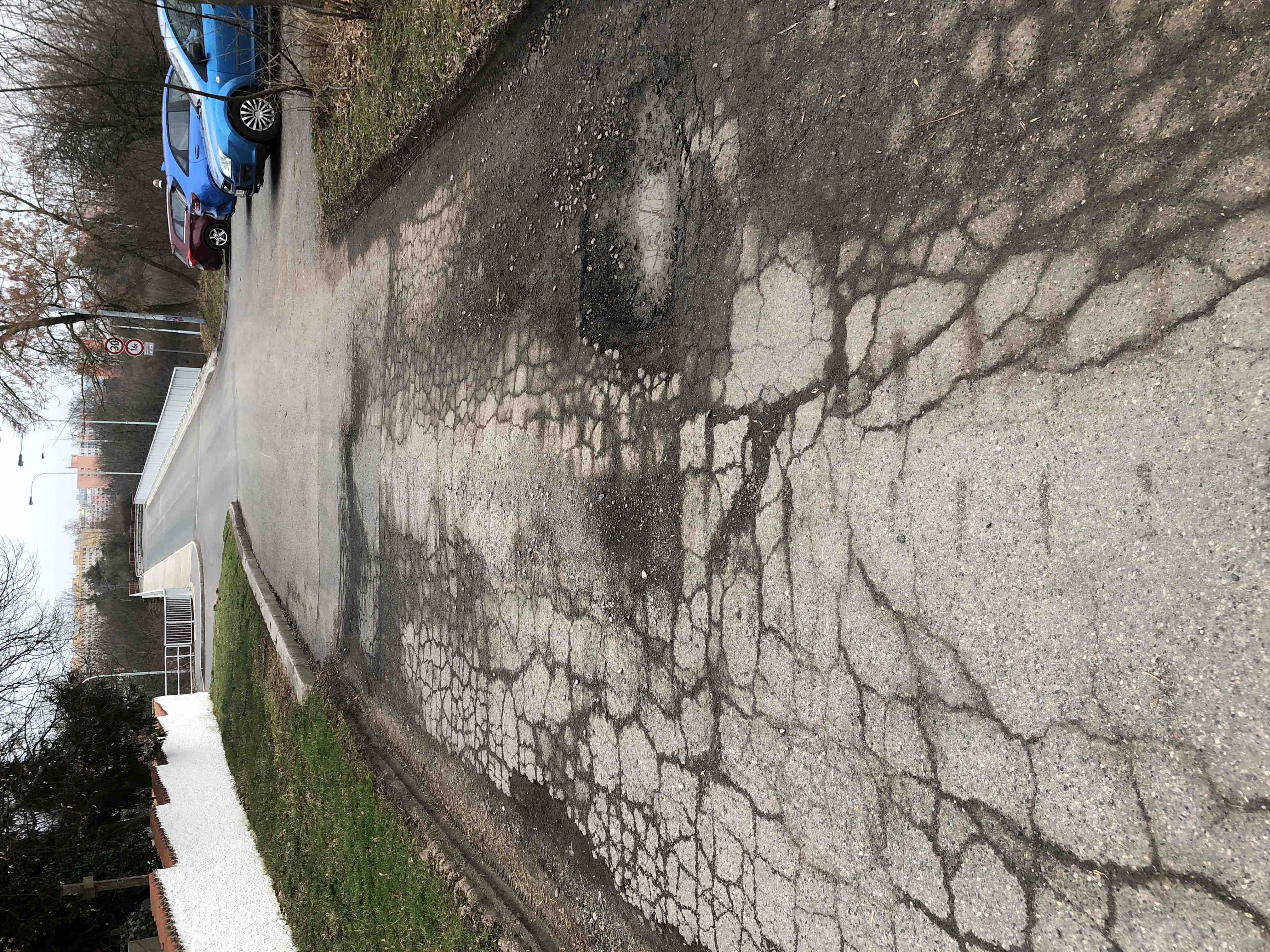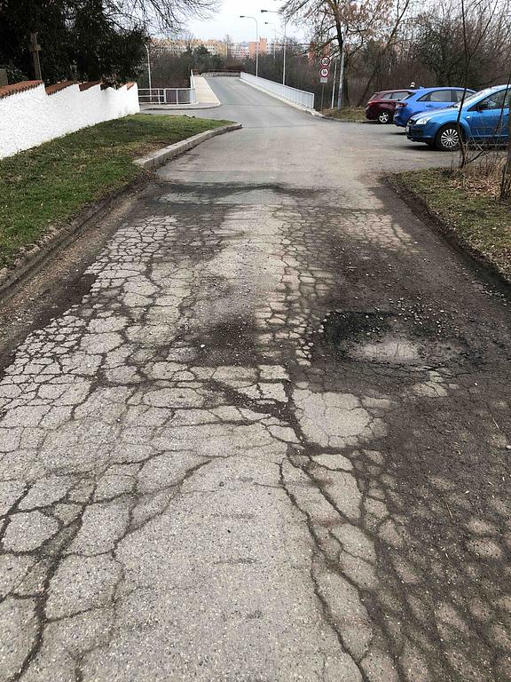 Poškozeny povrch vozovky.