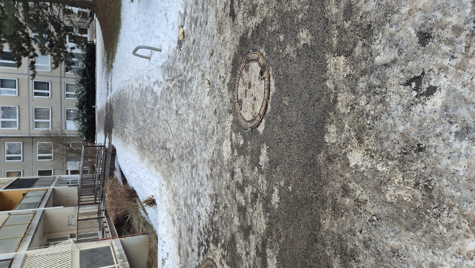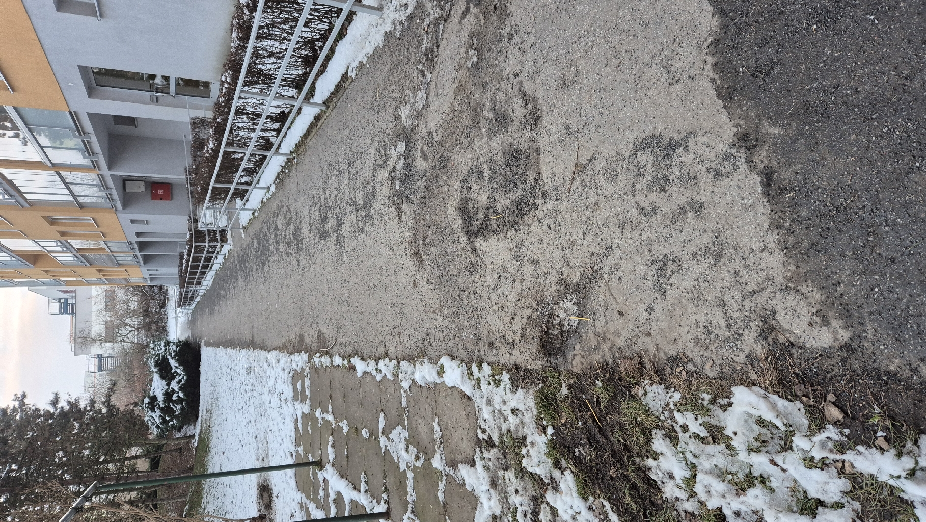 Bohužel je to ve stinné části vnitrobloku a posypová sůl účinkuje až od -6 st.C. Tak to snad už povolí.