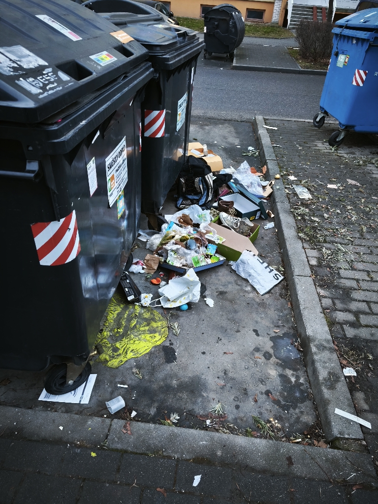Dobrý den, za stav kontejnerového stání odpovídá vlastník soukromého objektu, který musí zajistit dostatečný objem sběrných nádob dle OZV hl. m. Prahy, o odpadech a dle zákona o hl. m. Praze musí udržovat čistotu a pořádek na pozemku, který užívá. Pokud současný objem odpadové nádoby nestačí, doporučujeme zvýšit četnost vývozu, či počet kontejnerů. Vlastník objektu může požádat svozovou službu – Pražské služby o pravidelný, či jednorázový úklid kontejnerového stání.