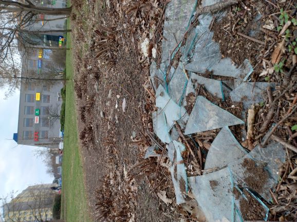 obracím se na Vás s prosbami: Prosím o odstranění rozbitého skla – viz fotografie v příloze – hrozí nebezpečí úrazu dětí ev. venčících psů.