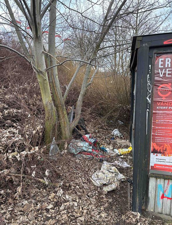 Odpadky za zastávkou Vackova a v jejím blízkém okolí.