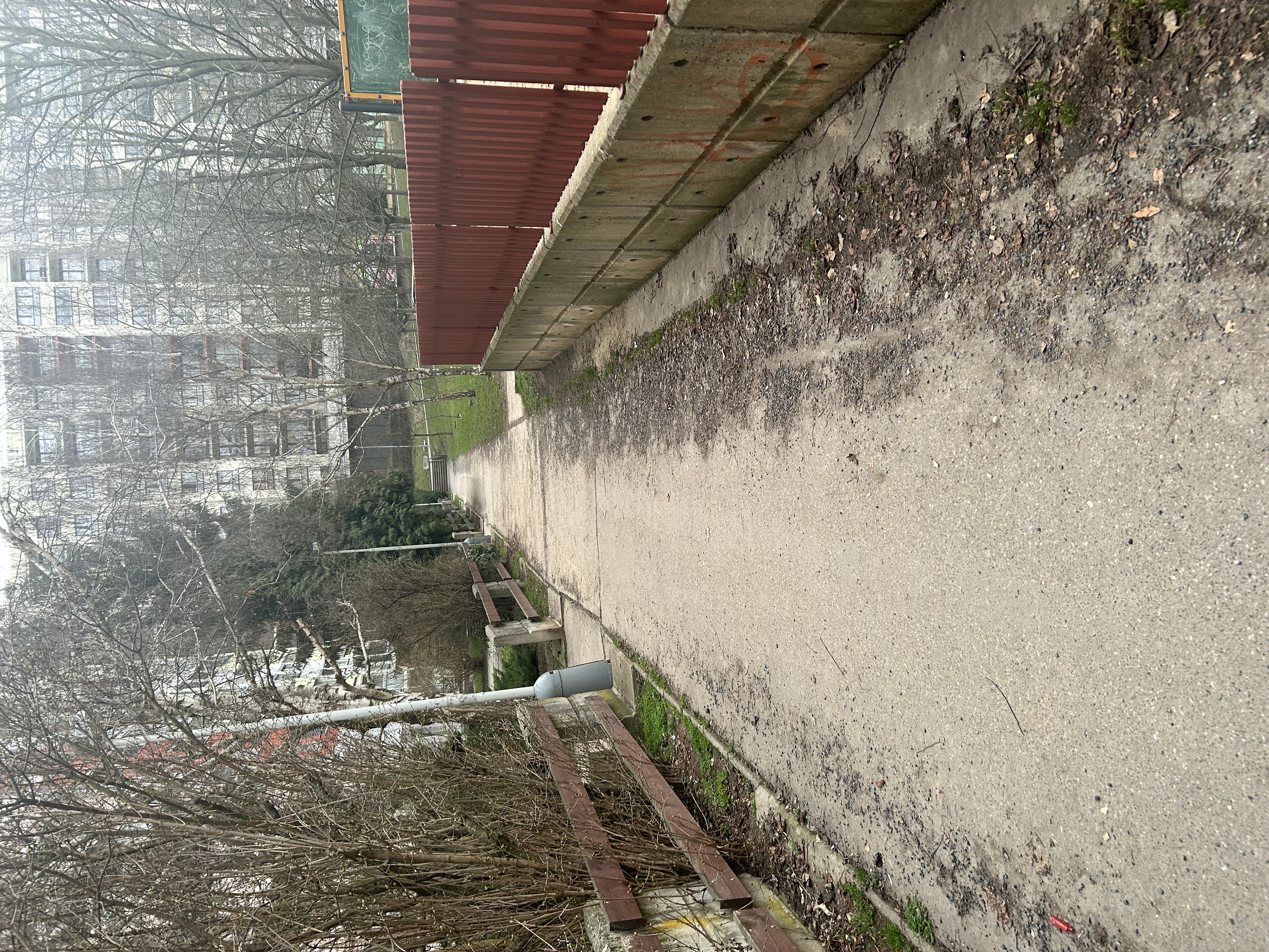 Ve vnitrobloku celá Zvoncovitá- chodník plný štreku po zimě a také hlíny co při dešti stéká z trávníku.