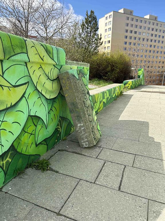 Uvolněné betonové zábradlí (grafiti) v ulici Zázvorkova x Modrá je již opraveno.