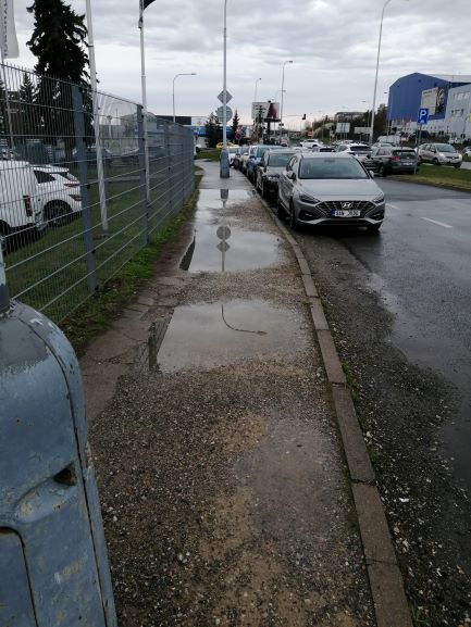 Dobrý den, mám dotaz k chybějícímu povrchu chodníku v ulici Tlumačovská, před autosalonem Peugeot Domanský. Stále není dokončen povrch obyčejného chodníku asi 20 let, chodník se nedá běžně užívat a chodí se ulici. Jedná se asi o 50 metrů chodníku. V příloze foto.