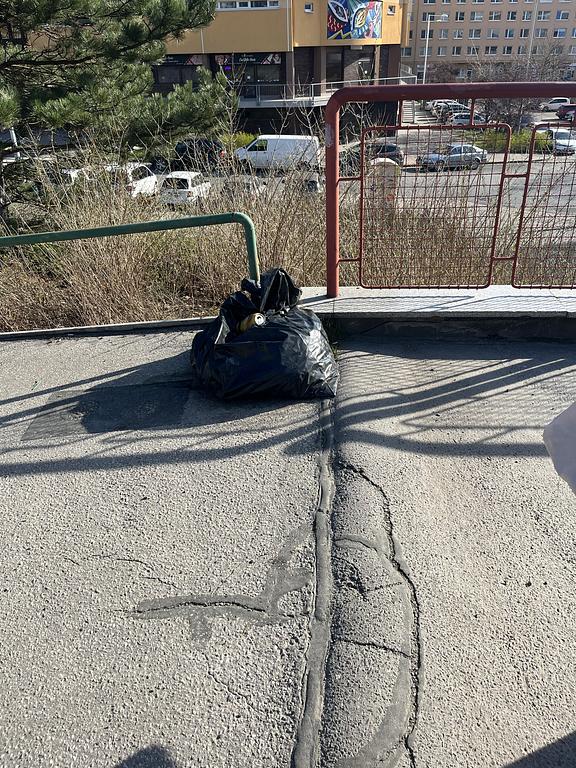 Dobrý den, při místním šetření dne 22.3.2024 bylo zjištěno, že pytel s odpadky byl uklizen.