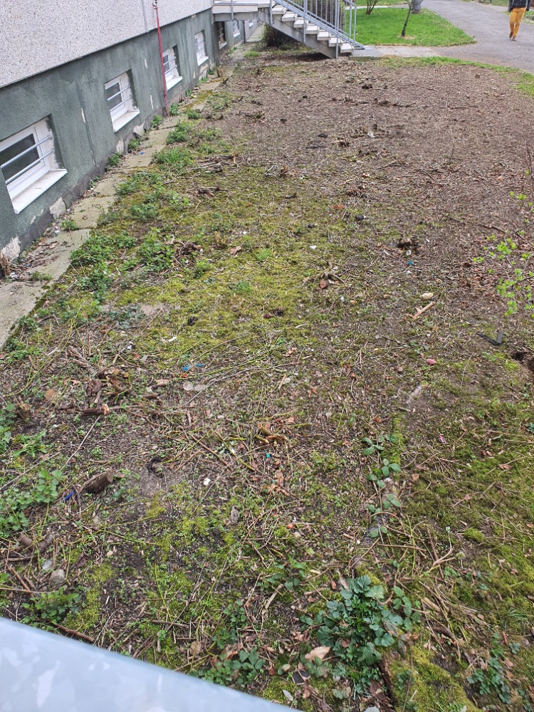 před našimi domy – Bellušova 1815-16 (ve vnitrobloku) byl pokácen živý plot, který ničemu nevadil – naopak krásně zakrýval relativně nevzhledný suterén domu, na jaře kvetl, byla to pěkná zeleň v šedi paneláků. Žádná džungle.