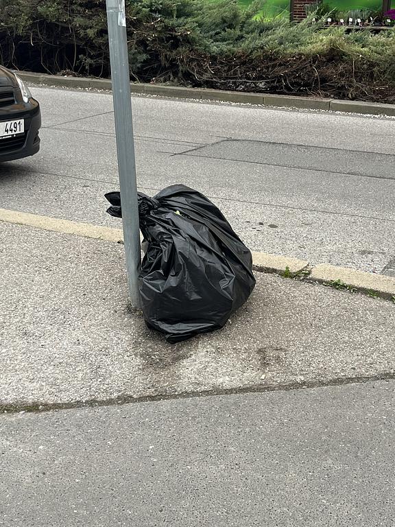 • Popis závady: V ulici Seydlerova před domem č.p. 2153/2 na chodníku odložený černý pytel odpadu, orientační bod lampa VO č. 507725
