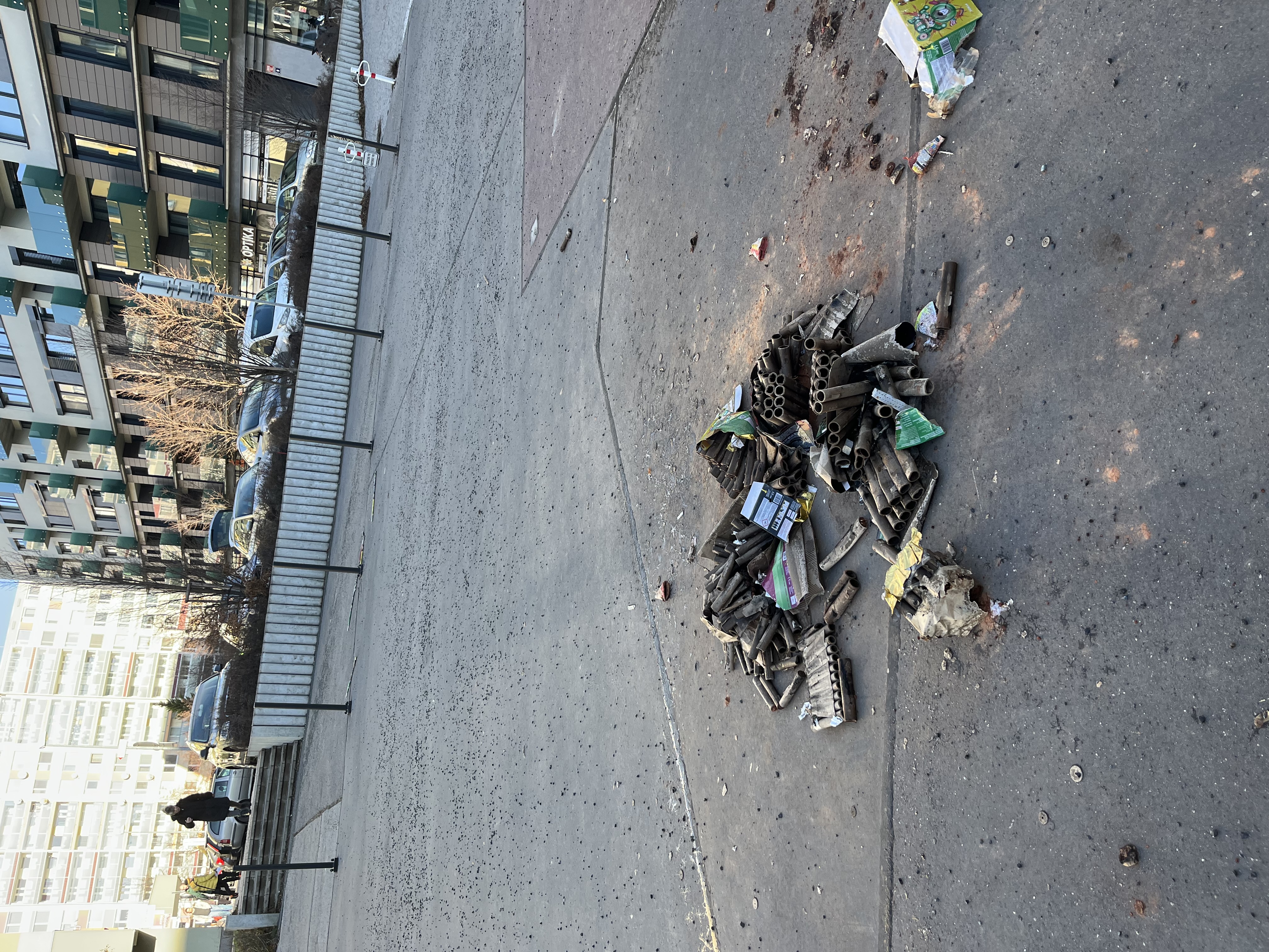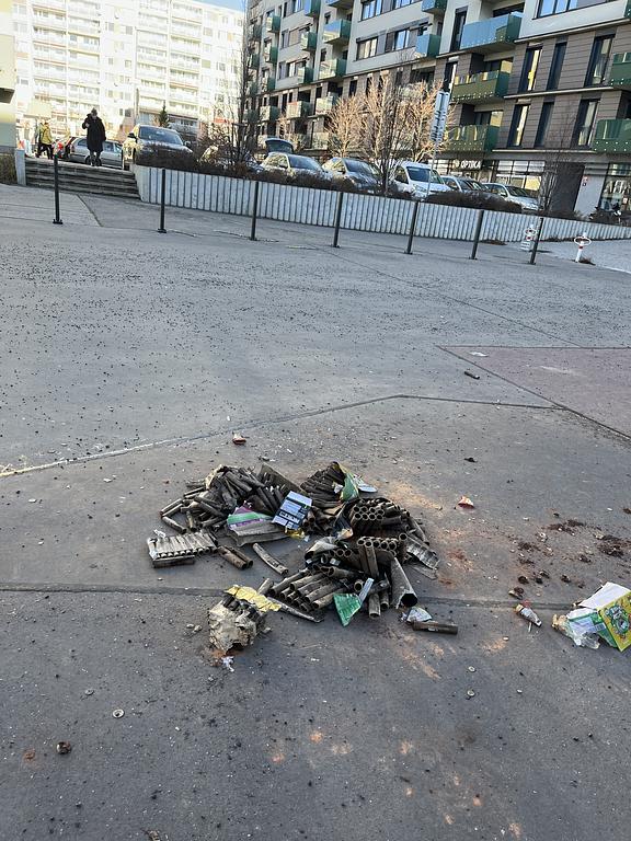 Je 10.1. a před poliklinikou lípa, uprostřed chodníku, kde denně projdou davy, leží pyrotechnika ze Silvestra.