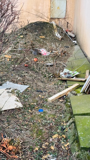 prosím o úklid odpadků v keřích u vchodů ulice Neustupného 1838-1839 včetně výklenku k 1840. Viz. foto.