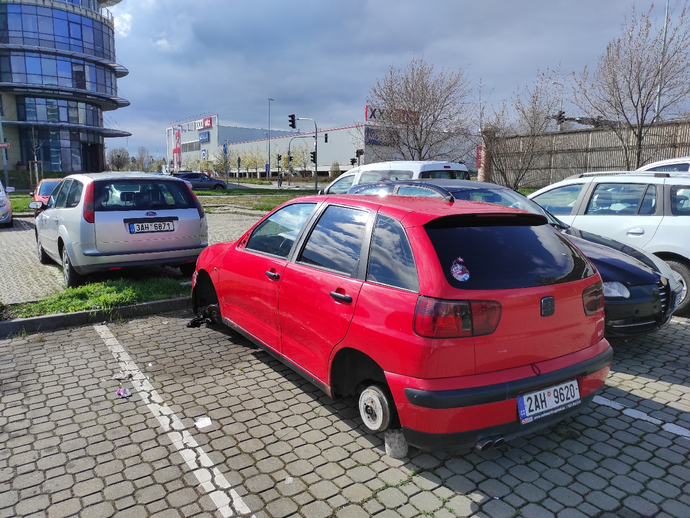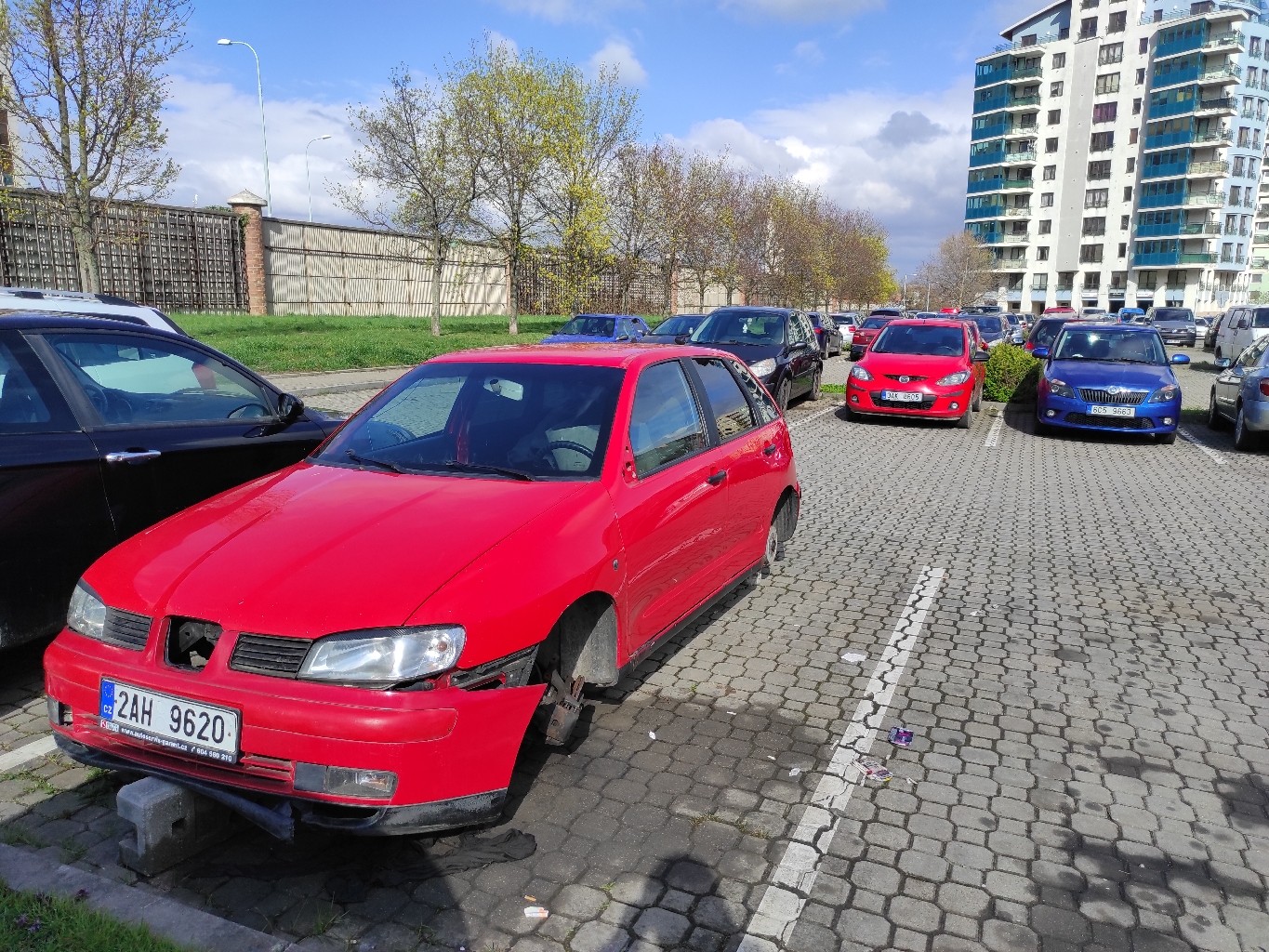 Seat Ibiza červená – ID 53857 – vyhodnoceno jako vrak, v dubnu zahájeno SSÚ Praha 13 řízení