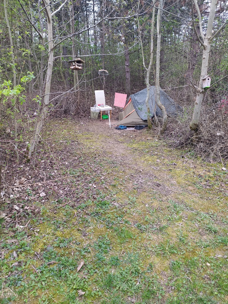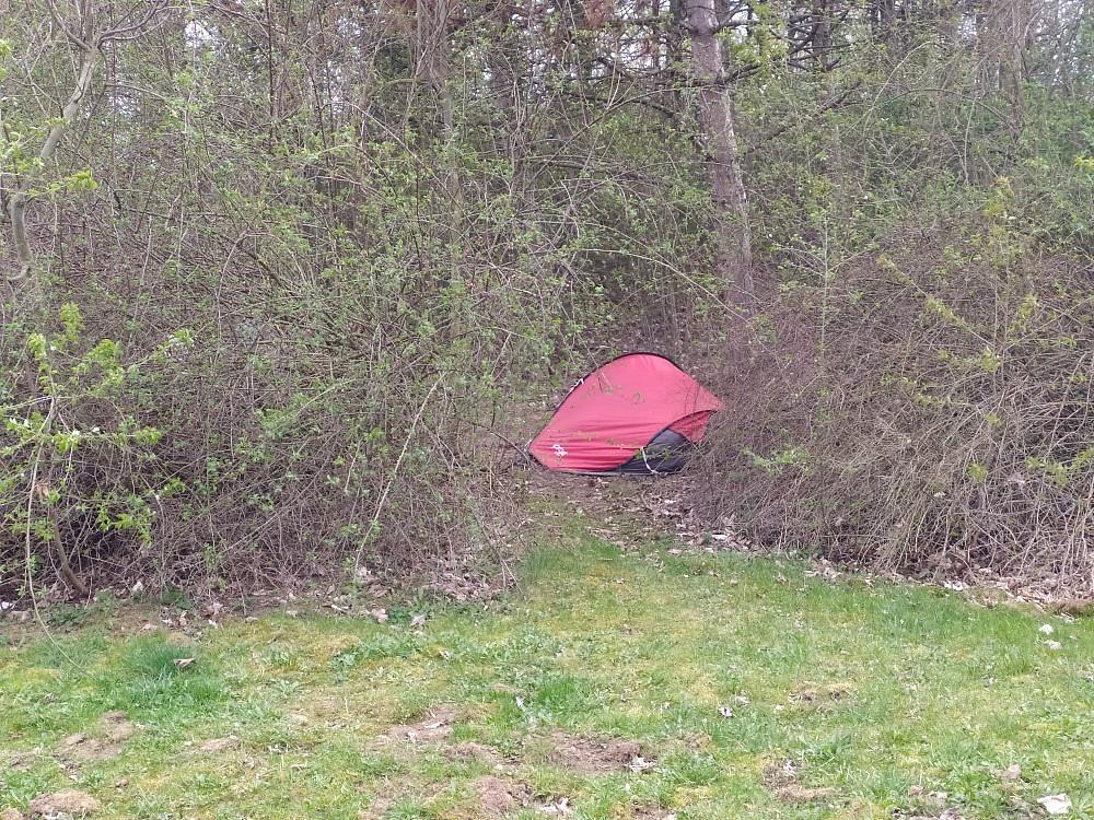 Rovnoběžně pod ulicí Herčíkova, Velká Ohrada, Praha 13 (viz příloha ) „bivakuje“ někdo zjevně bez domova od zimy v červeném stanu. Před nějakou dobou tam pribyl druhý stan a uz tam maji i židličky, šňůru na prádlo apod. Takže to opravdu nepůsobí, ze by se chtěli stěhovat.