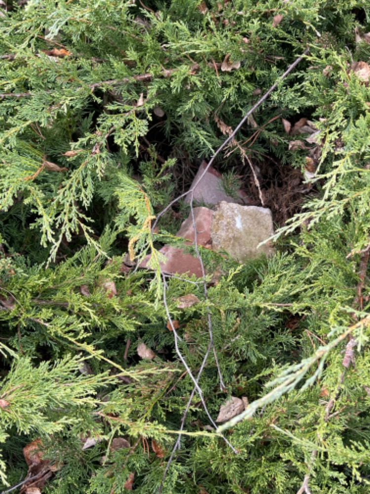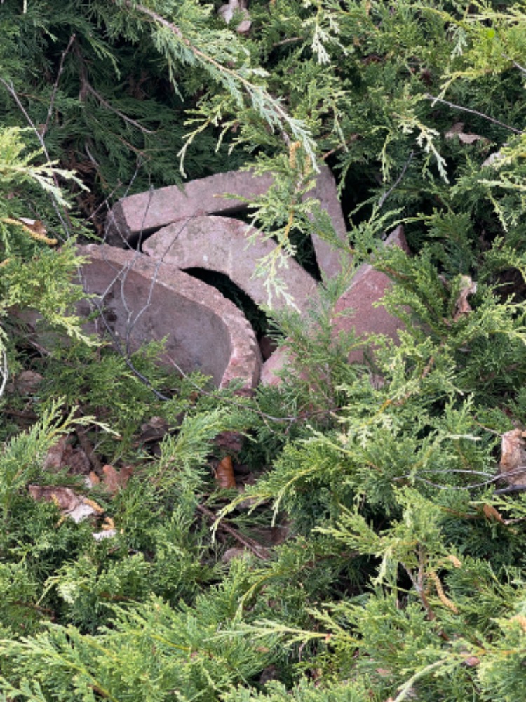 v porostu podél chodníku jsou na několika místech naházeny kusy betonu.