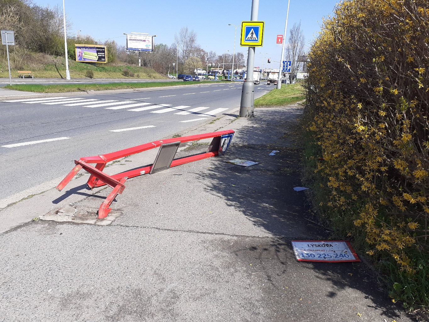 Rozbitá autobusová zastávka Lýskova směr Dědina.