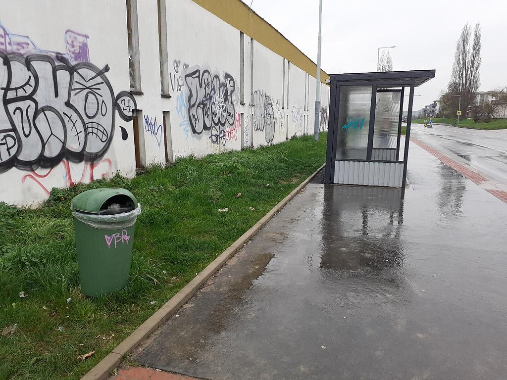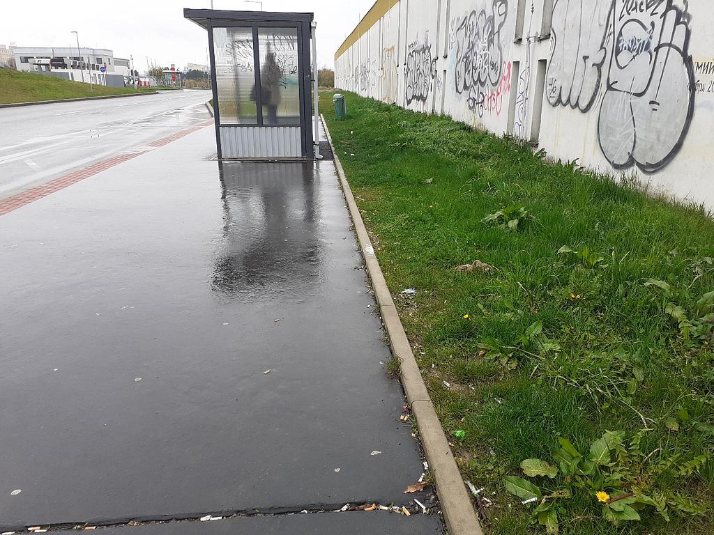Neustálý nepořádek, neustále rozbitý přístřešek a malý přístřešek. Nezaslouží si zastávka nový větší přístřešek a nový koš i na nedopalky cigaret?