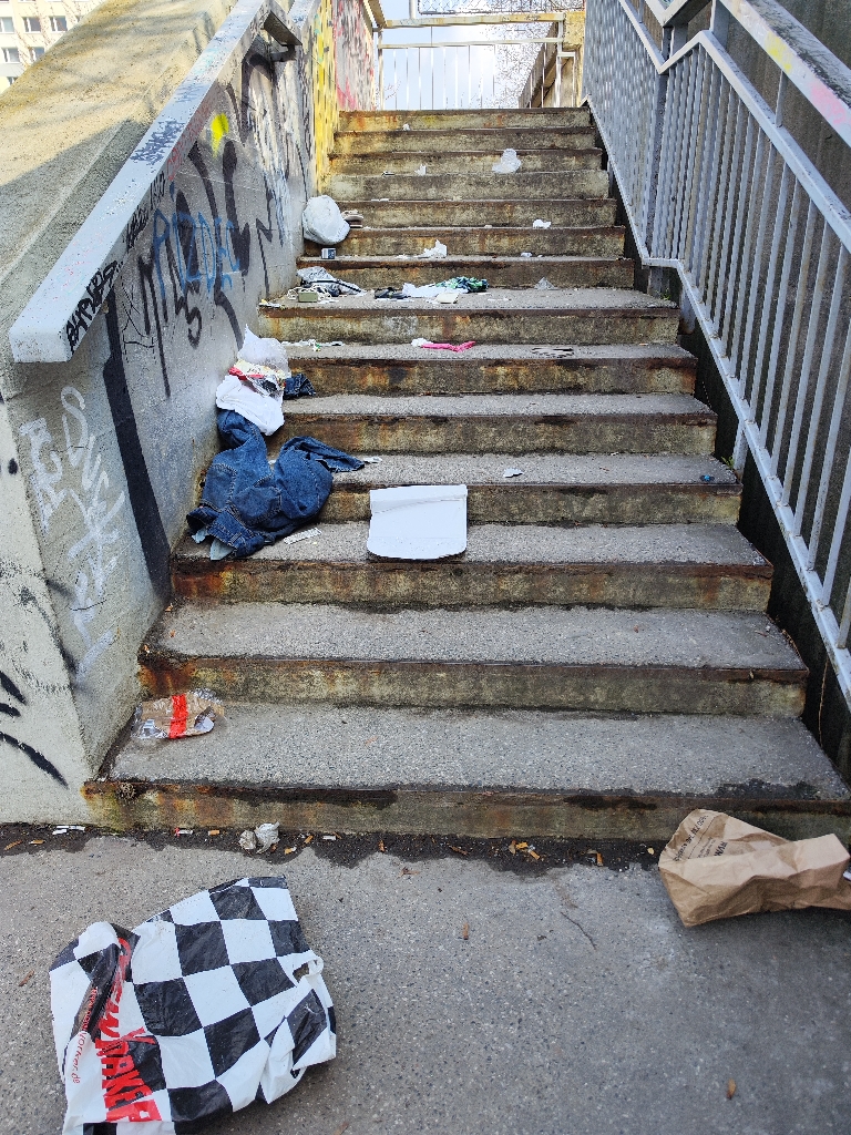 Dobrý den, nepořádek na schodech byl uklizen. Děkujeme za upozornění.