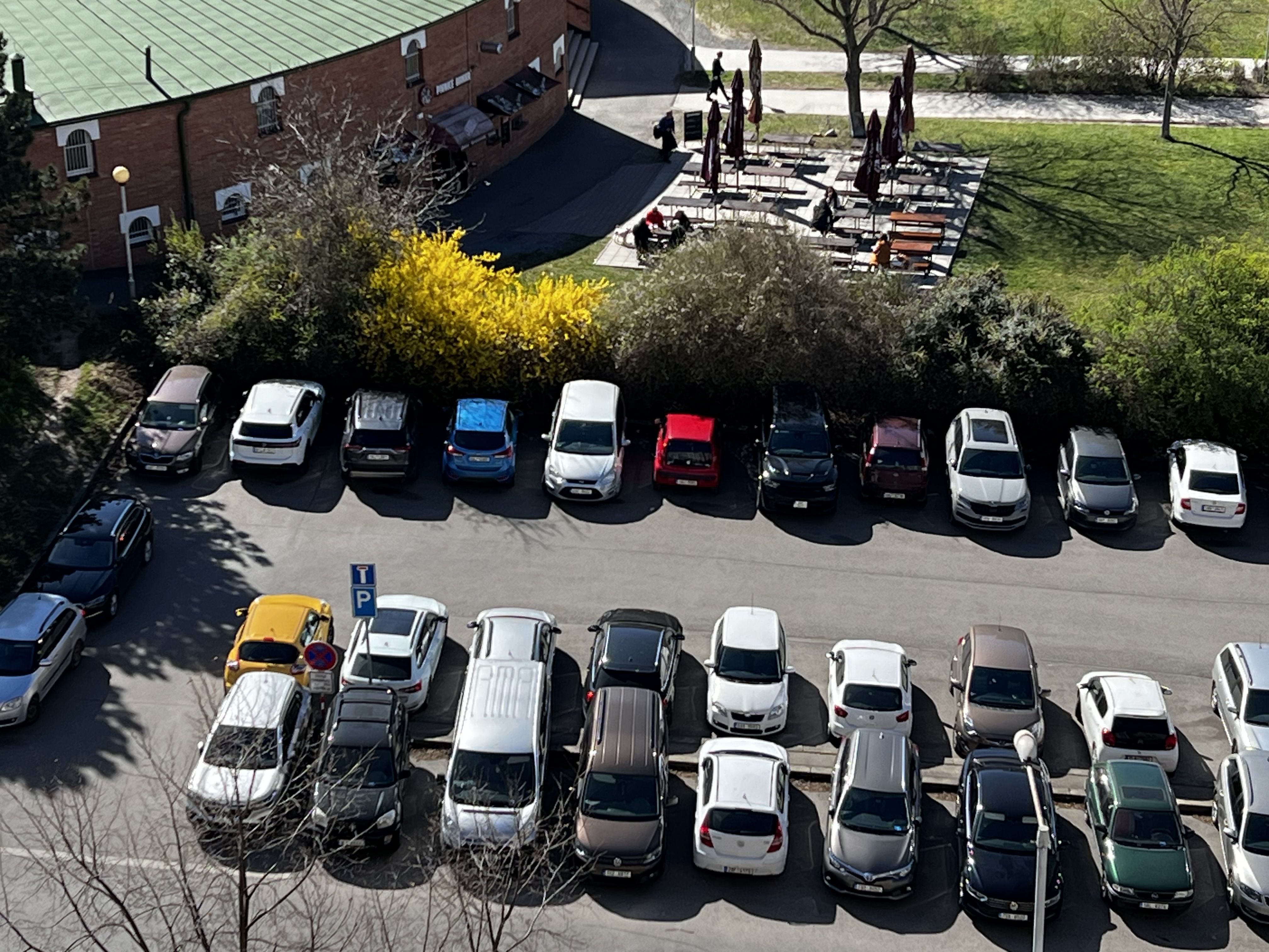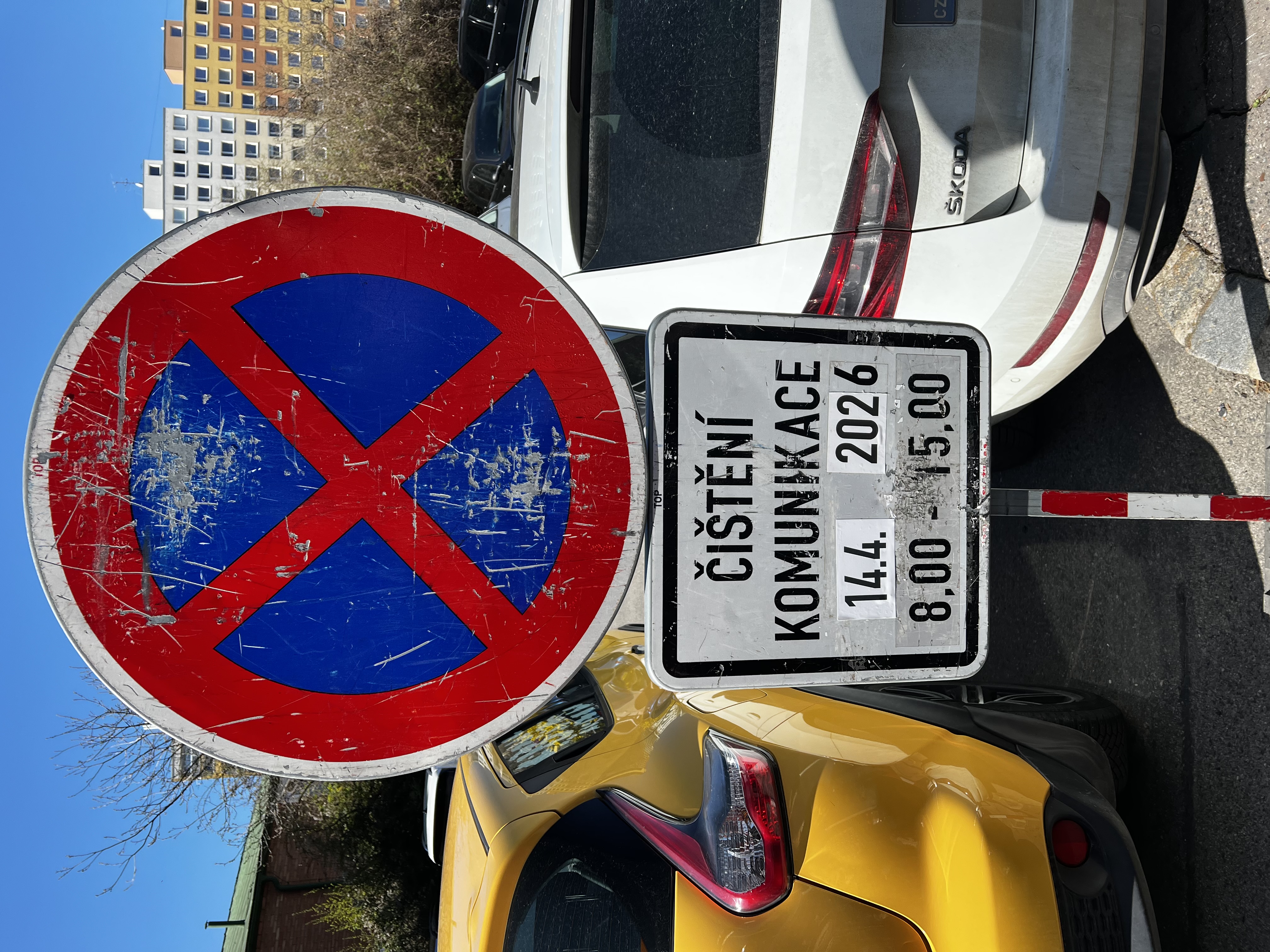 Nebezpečné parkování, riziko nehody nebo úrazu, prosim o úpravu(tvarování) křovi při čištěni komunikace dne 14.4.