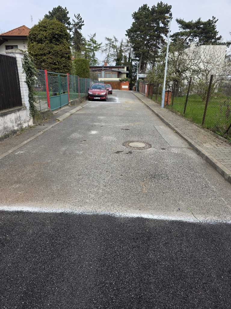 Znečištěná komunikace po výkopových pracích – poslední déšť to nesmyl. Děkuji