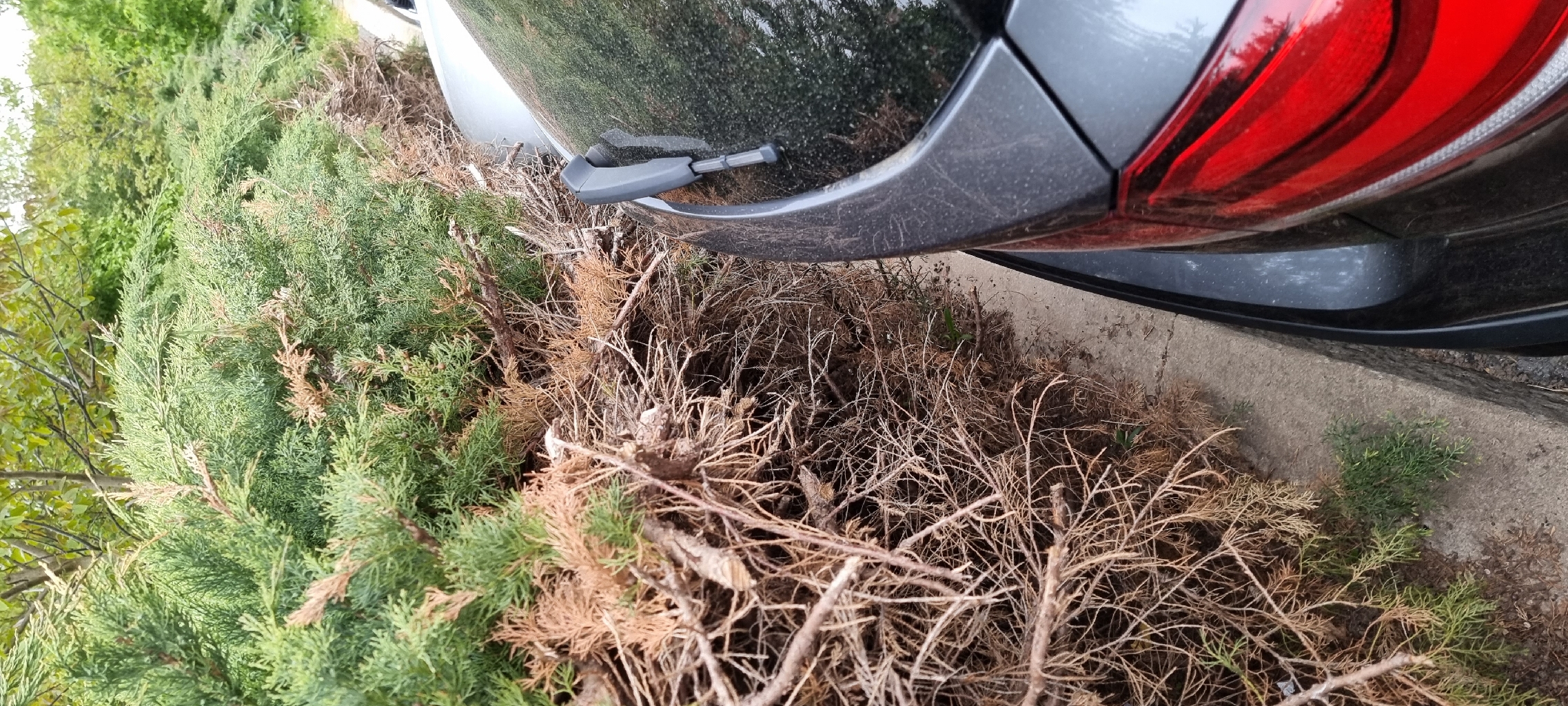 firma provádějící stříhání keřů podél silnice na straně parku zastrihuje pouze mladé výhonky, staré masivní větve zůstávají a jsou nebezpečné při parkování, obzvlášť, když je zakryjí nové vyrustky a další traviny. je pak jednoduché při parkování do skryté větve nacouvat. navíc se pod krovinami zachytavaji nafoukane odpadky