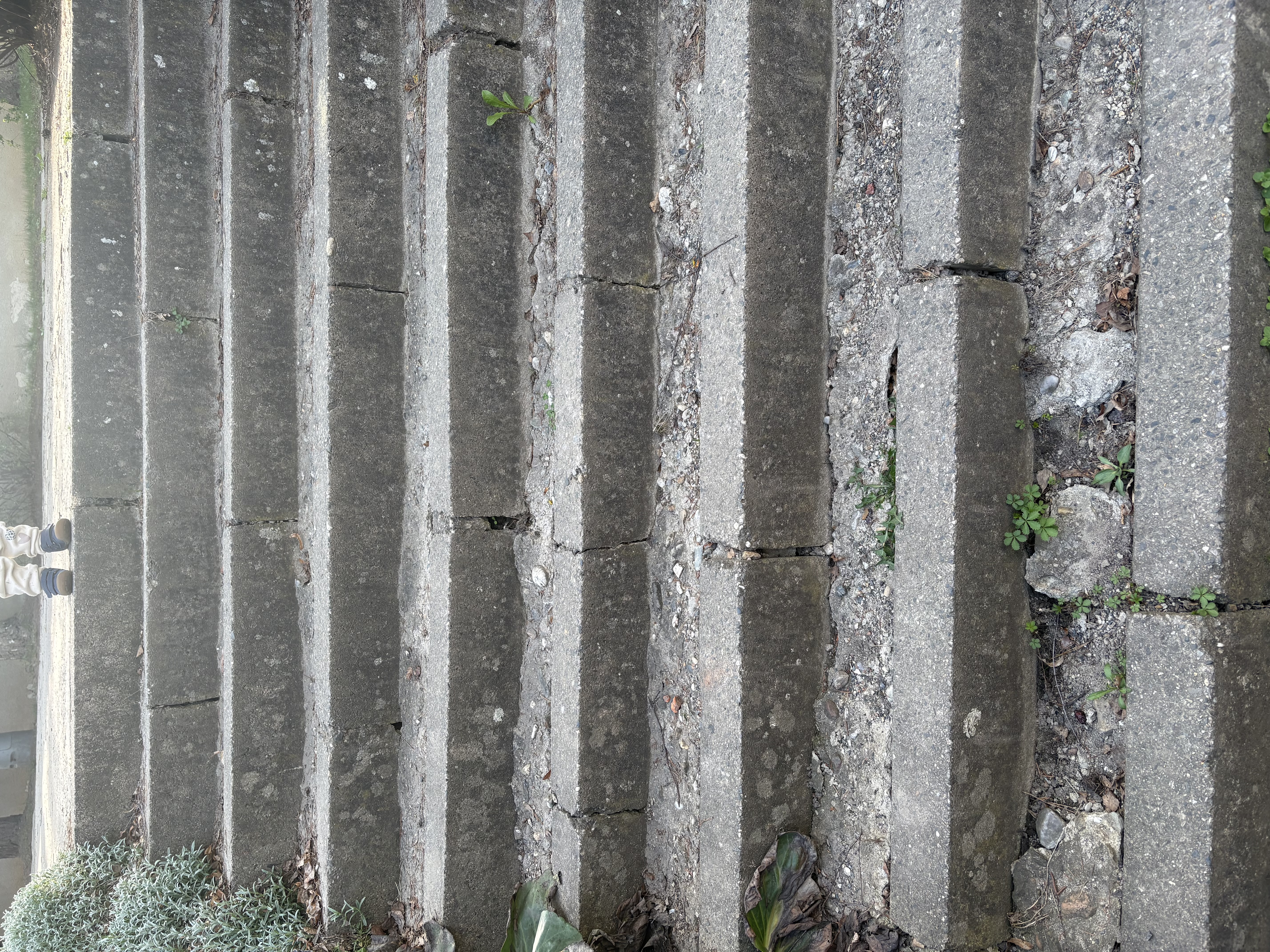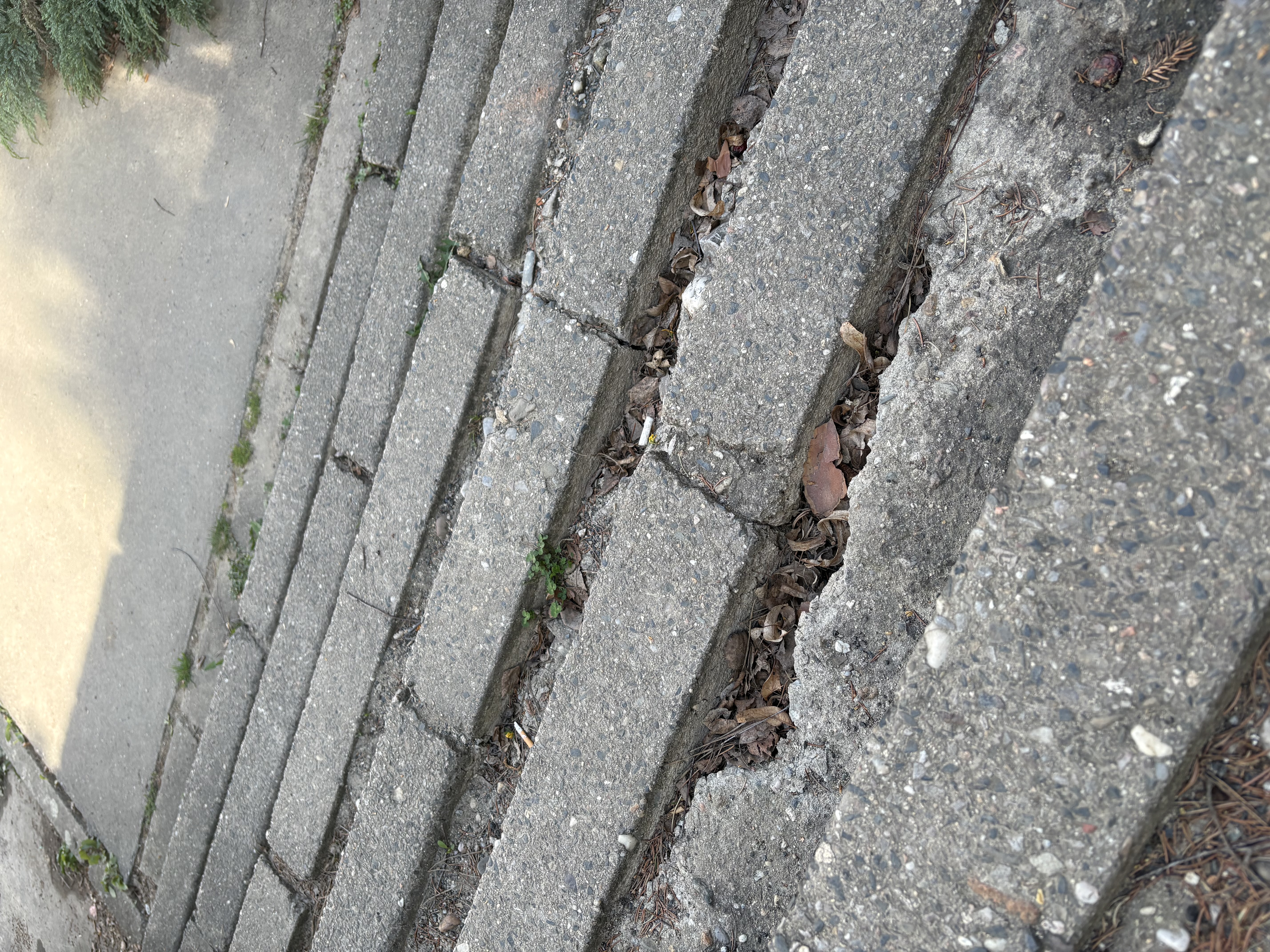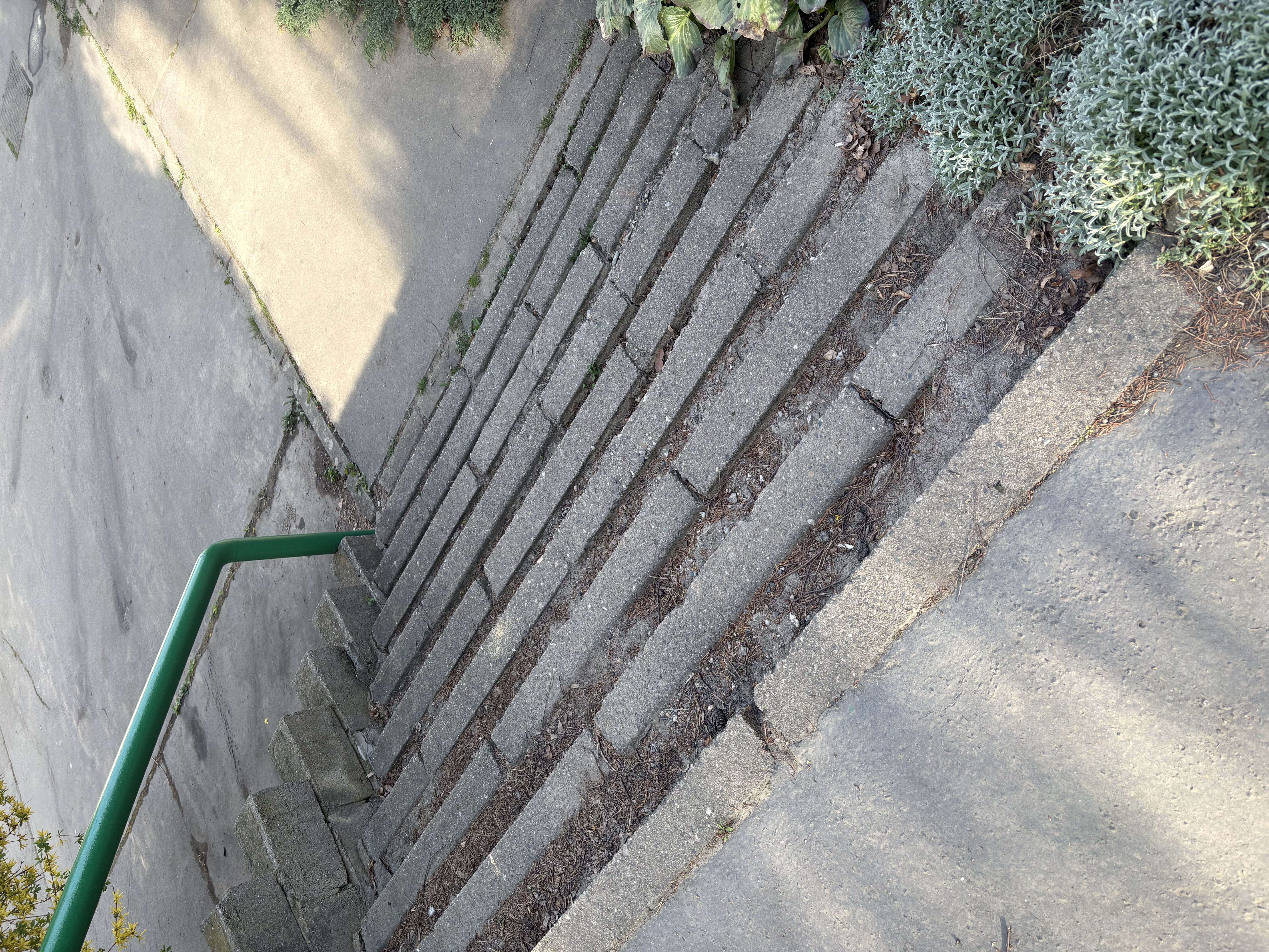 Schody jsou nebezpečné na chůzi kvůli rozpadajícímu se betonu a betonovým blokům. Vznikají praskliny, kde se může zachytit noha např. malého dítěte. Ideální by zde byl také nájezd na kočárek, jelikož u vedlejšího domu se nedá správně procházet, protože se jedná o svod vody, nikoli chodník. Děkuji za zvážení.