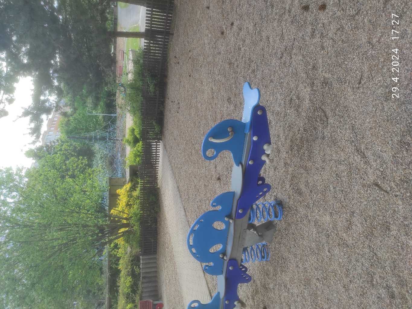 Dobrý den, herní prvek – houpačka s prasklou pružinou byl správcovskou firmou demontován, po objednání náhradní dílu bude opět zprovozněn. Děkujeme za podnět, OŽP