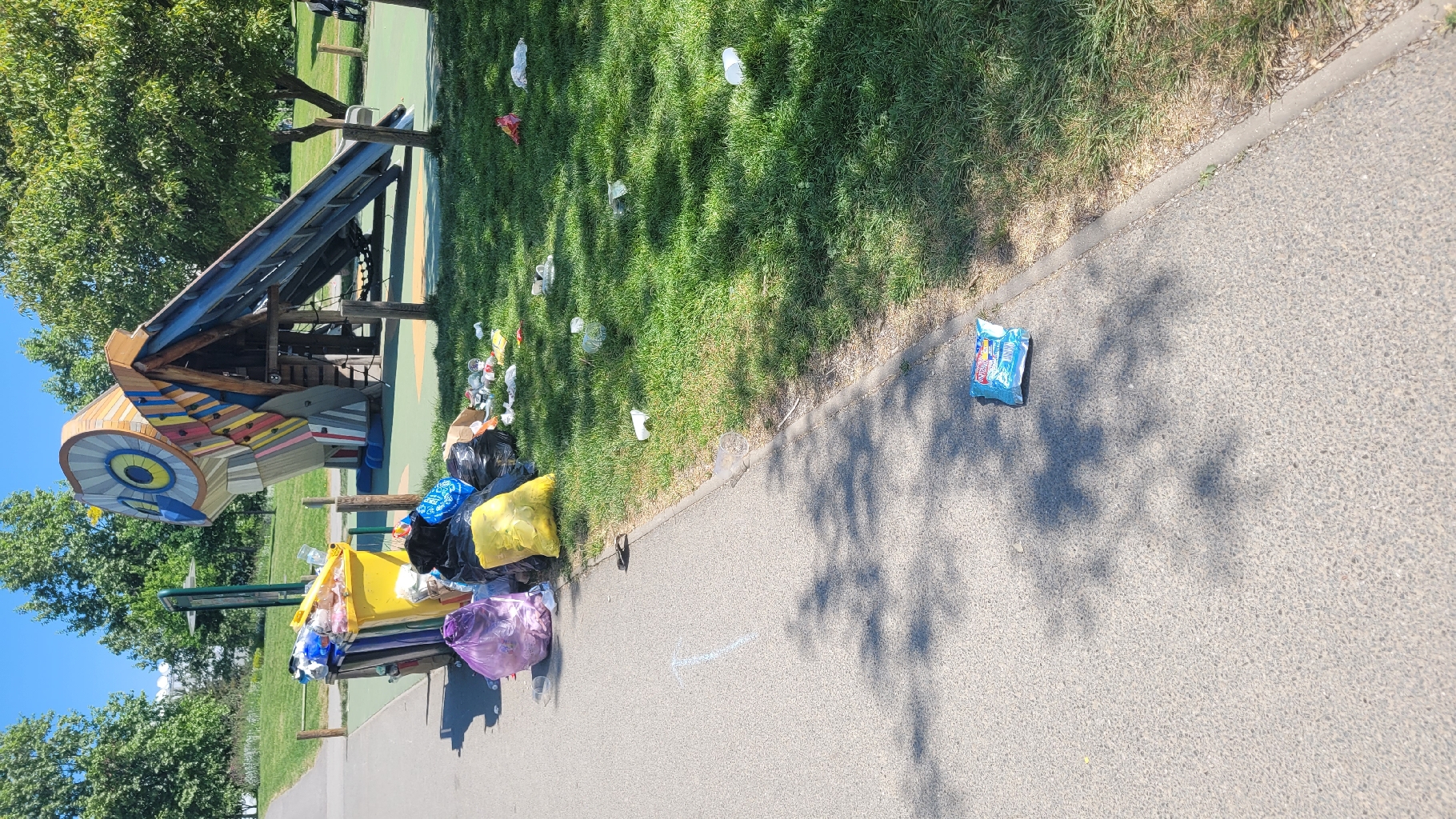 Přehršle odpadků u dětského hřiště