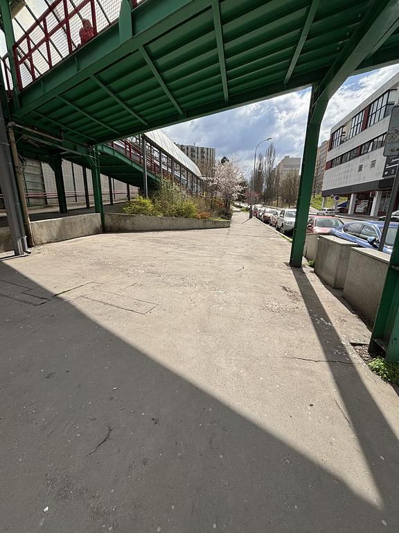 Špinavý, pokálený chodník pod lávkou na Lukách