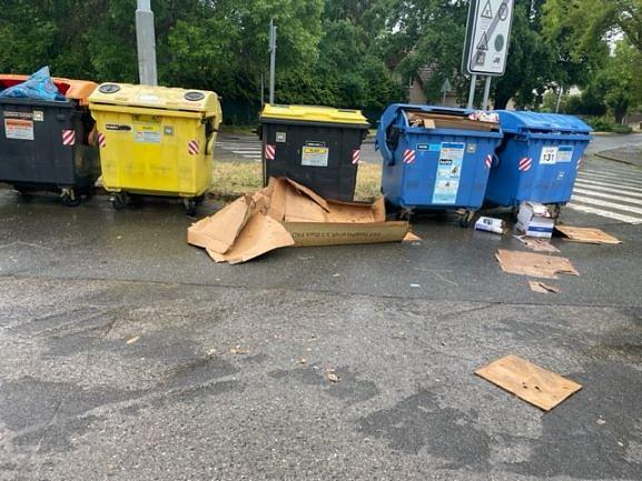 zasílám foto místa u popelnic na rozhraní ulic K Vidouli a U Cikánky v Praze 13. Takto vypadá toto místo často, i když popeláři pravidelně provádějí odvoz popelnic a četnost vývozu se zvýšila. Bylo by vhodné nějakou vhodnou formou ohradit popelnice, do kterých takto přivážejí odpad občané z okolí a my, ostatní vlastníci, jsme nuceni ve svém okolí trpět takový nepořádek. Praha 13 pečuje  velmi dobře o životní prostředí v okolí, za což děkujeme, ale foto, které zasílám, vaší  práci znevažuje. Již jsem se o tuto problematiku zajímala v minulosti a výsledek je stále horší. Odpověď, že místo je veřejné  a  popelnice nelze ohradit/ s odkazem na