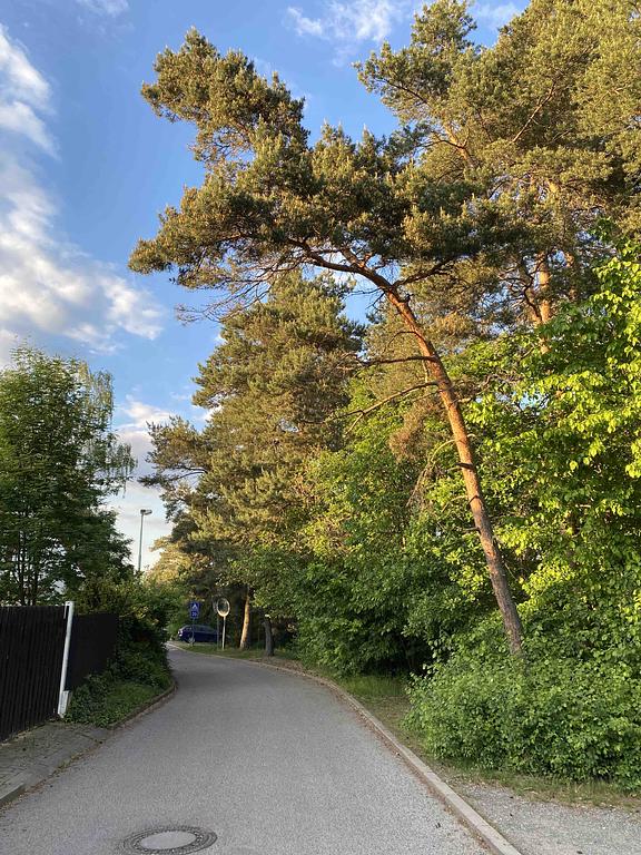 Borovice je hodne naklonena nad silnici-nebezpeci padu do vozovky.