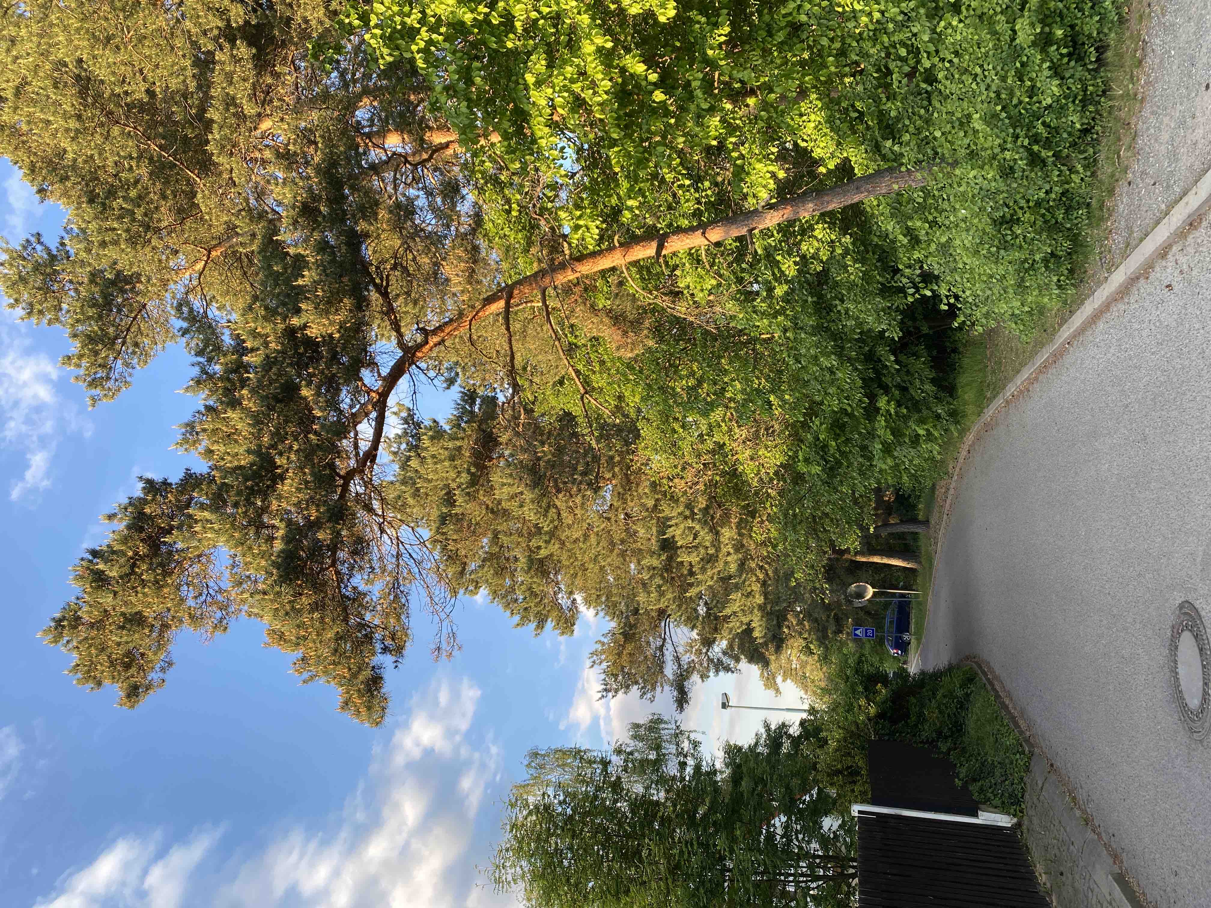 Borovice je hodne naklonena nad silnici-nebezpeci padu do vozovky.