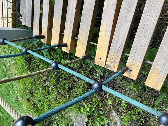 v Panske zahradě na detskem lanovem moste jsou vytrzene 4 provazove zavesy zabradli (viz foto)