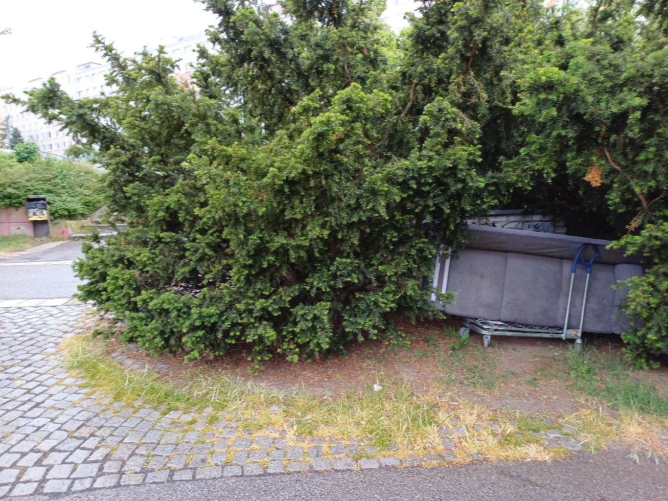 Dobrý den, odložený gauč s nákupním vozíkem bude odklizen správcovskou firmou. Děkujeme za podnět. OŽP