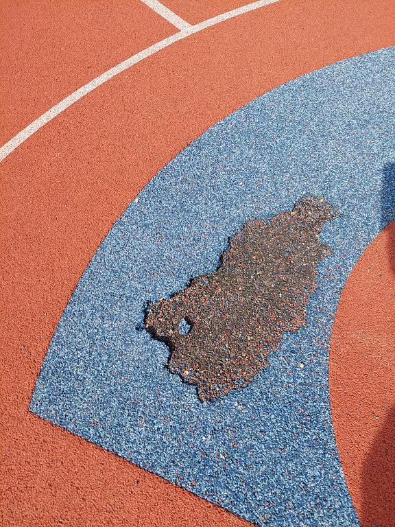 poniceny tartan na hristi nad skolkou ms sikulka,zbytky tartanu jsou po celem hristi,predem dekujeme za opravu