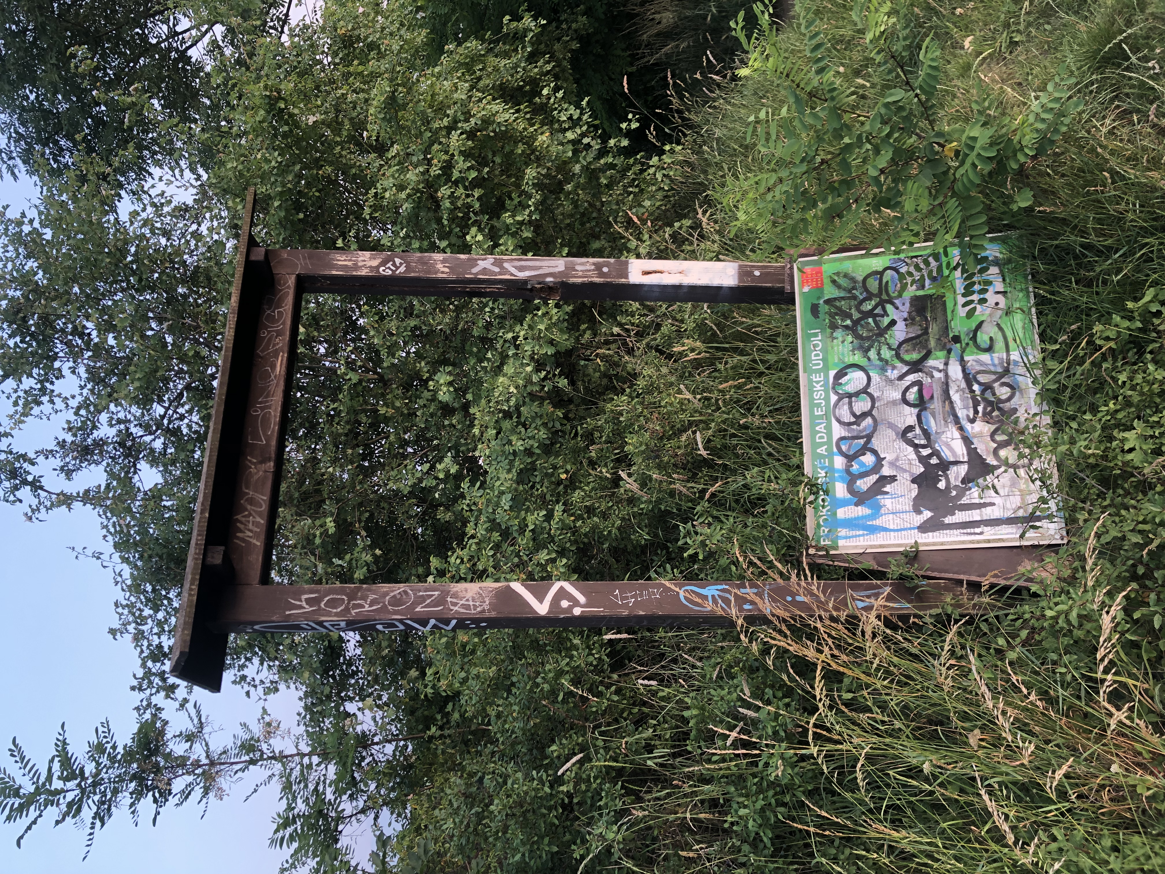 Stojan s popiskem údolí se rozbil a nejde přečíst přes grafiti
