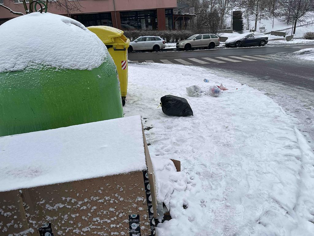 Neporadek u kontejneru na trideny odpad
