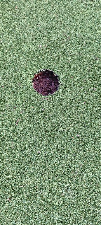 Po roce se opět hlásím s upozorněním na závadu na veřejném golfovém hřišti v Centrálním parku. U jamky č. 14 chybí jímací hrnek, takže po úspěšném zahrání míček mizí pod hrací plochou. (viz foto v příloze). Vzhledem k celkově zhoršenému stavu hřiště jde o závadu drobnou, avšak v tomto případě zdravotně nebezpečnou. Při hojném výskytu drobných hlodavců, na který jsem upozorňoval již vloni, se může stát, že dojde k pokousání hledajícího hráče některým z těchto „obyvatel“ hřiště. Je škoda, že majitel souhlasil s náhradou azbestového povrchu jamek za umělý travnatý koberec, který hřiště učinil téměř z poloviny nehratelným. Jednak se z tohoto povrchu obtížně odstraňují spadané listy a uvadlé květenství okolních stromů a keřů, ale také se výrazně změnily podmínky pro pohyb míčků po tomto povrchu, který je nepravidelný a navíc není vůbec značený barevnými čarami, vymezujícími hrací pole. Navíc jamka 11 má nesprávně položeny bariérové trojúhelníky. Požitek ze sportu na zdravém vzduchu se změnil v pouhý pohyb na zdravém vzduchu.