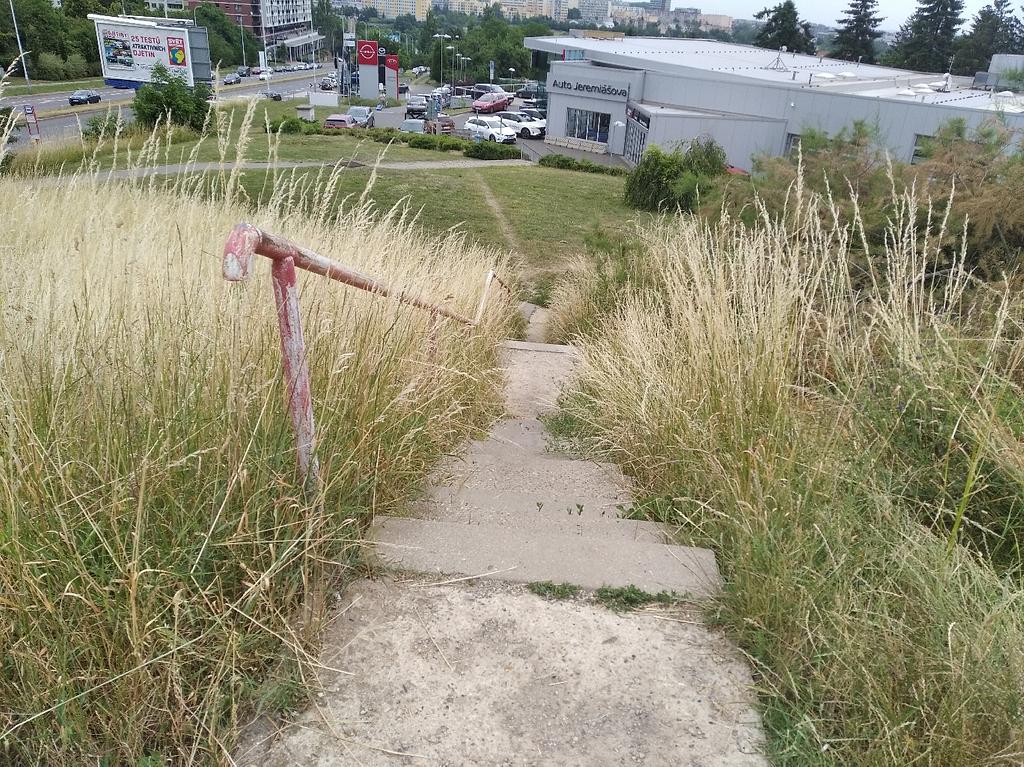 Dobrý den, chtěl bych nahlásit hodně přerostlou trávu u schodů, které vedou na most nad Jeremiášovou ulicí u zastávky Píškova. Foceno 30.6.2023 cca 9:16