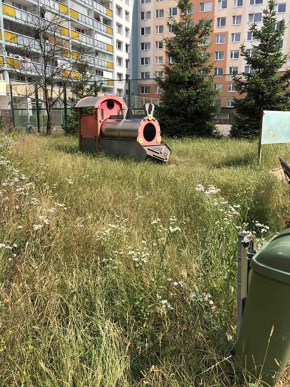 Dobrý den, tráva na dětském hřišti byla posekána. Děkujeme za podnět, OŽP.