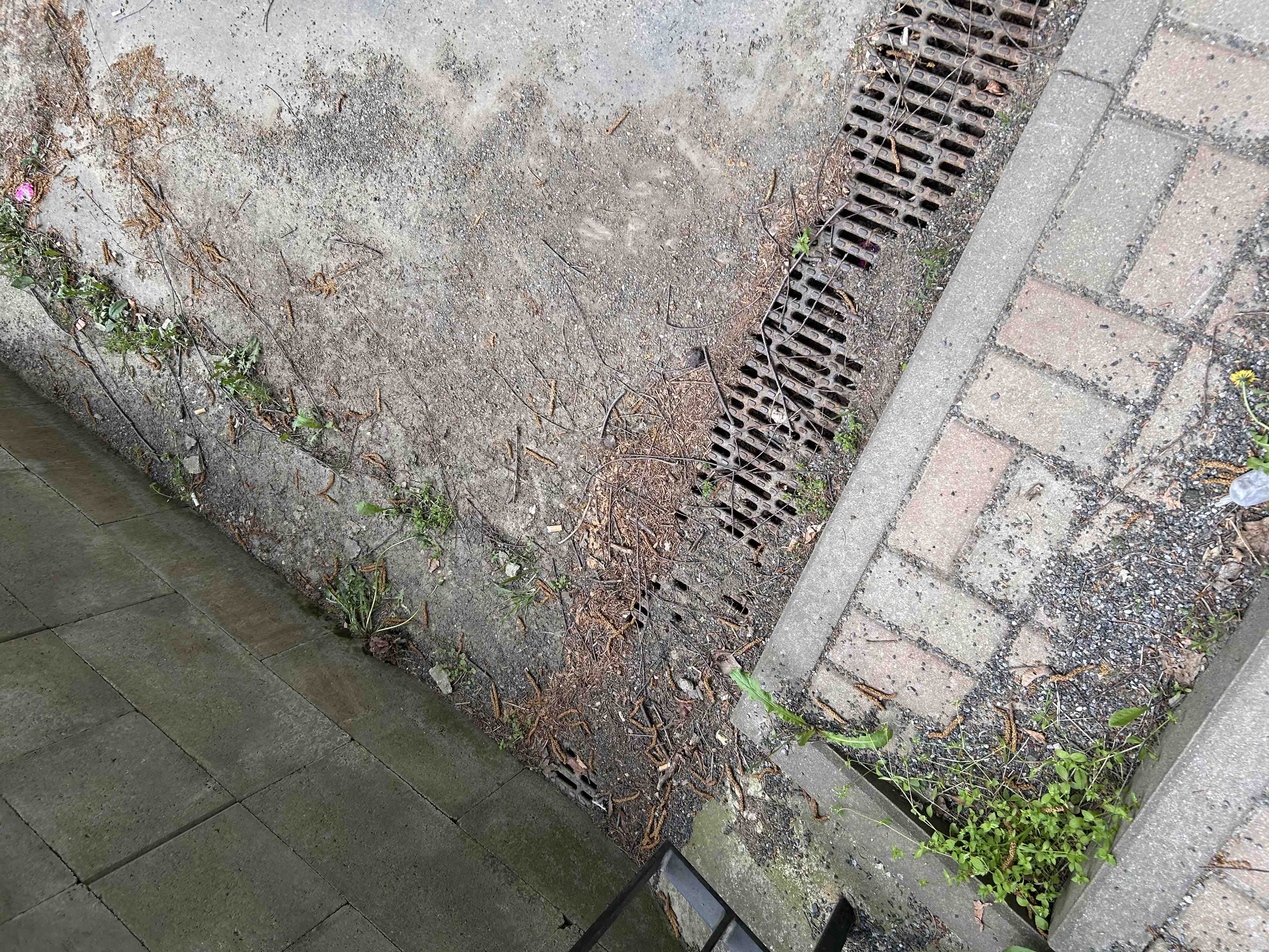 Schody plné štěrku a kamínku proti námraze. Žlábek taky plný listí atd…