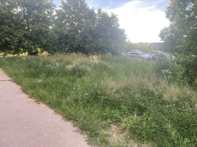 Janského 2193/75 – neudržovaný trávník na soukromém pozemku
