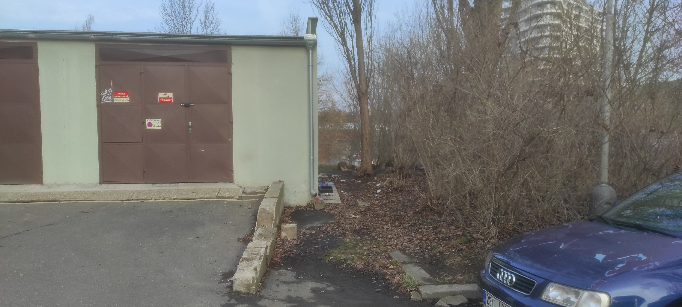 Větve stromů zasahující do chodníku, obtížné se vyhýbat proti chodcům. Též keře kolem parkoviště Neustupného – Bellušova, větve keřů zasahují do prostoru parkoviště a zmenšuje se prostor už tak dost omezený, samozřejmě se zde udržují též nepřizpůsobilí spoluobčané a je zde výskyt použitých injekčních stříkaček ,, feťáků “.